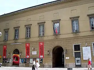 In Napoleonic era it housed the Departmental Prefecture, when new renovations were undertaken. With the Unification of Italy, in 1861 there was a swap between the Municipality and the State, which saw an exchange between Palazzo Marino and Palazzo Carmagnola: the former now became the municipal seat, chosen both for a question of space and for a question of prestige and significance,[3] the second came to house the offices of the Demanio, undergoing further remodelling and adaptation. Between 1890 and 1893, in conjunction with the construction of Via Dante, the body of the building overlooking Via Rovello was rebuilt, with the façade being rebuilt, taking particular care not to excessively alter the appearance of the main courtyard, which was in any case amputated. From 1910, the year of the demolition of the former Monastero del Bocchetto, it also housed the Stamp and Registry Office, previously located in the former religious structure.