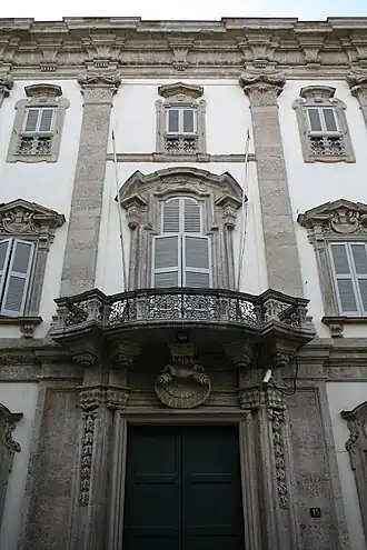 From an architectural point of view, one must note the peculiarity of the so to speak exuberant forms of the exterior façade, an anomaly when compared to Milanese buildings of the time, which betrays the Roman influence of Giovanni Ruggeri. In fact, it is no coincidence that the façade is reminiscent of the Late Roman Baroque, in which windows with mixtilinear frames and bulging balconies stand out. The façade also features two twin portals, said to be wanted by two brothers of the family for their mutual desire not to meet.
