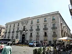 The Palazzo San Giuliano is a monumental palace located in Piazza Universitaria, in the center of the city of Catania, Sicily, southern Italy. Once a private home of the San Giuliano branch of the House of Paternò, it has also served as hospital, bank, theater, and hotel. Presently it houses the administrative offices of the University of Catania, and stands across the piazza from the Palazzo dell'Università, which has the rector's offices, a library, and a small museum.