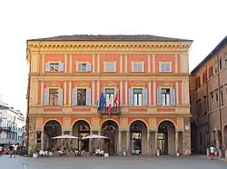 The Palazzo del Collegio dei Mercanti (Palace of the College of Merchants) is a baroque-style palace located recessed and to the left of the Palazzo Gotico facing Piazza dei Cavalli in the historic center of Piacenza, northern Italy. It now houses the offices of the town hall and council.