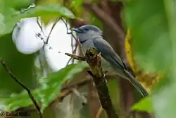 The pale-blue monarch was originally described in the genus Myiagra and then classified as subspecies of the widespread black-naped monarch, Hypothymis azurea, until split by the IOC in 2013 to describe a new species.[1] Some other authourities have not yet adopted this species split.[2] The alternate name Moluccan monarch should not be confused with the species of the same name, Symposiachrus bimaculatus. Additional alternate names for the pale-blue monarch include Pacific monarch (a name shared with the buff-bellied monarch), Pacific small monarch and small monarch.