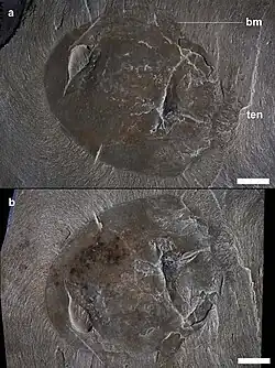 - ^ Moon, Justin; Caron, Jean-Bernard; Moysiuk, Joseph (2023-08-09). "A macroscopic free-swimming medusa from the middle Cambrian Burgess Shale". Proceedings of the Royal Society B: Biological Sciences. 290 (2004). doi:10.1098/rspb.2022.2490. ISSN 0962-8452. PMC 10394413. PMID 37528711.