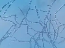 Paleomycology is the study of fossil fungi.[1] Paleomycology is considered a subdiscipline of paleobotany, centered on mushrooms, fungal spores, and hyphae preserved in sediment layers and rock.[2] Fungi have been found in the palaeoecological record as far back as the Paleozoic era, with evidence of influencing the evolutionary processes of early flowering plants.[3]