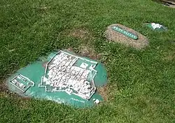 Palestine Park is a scale model of the Holy Land, including cities, hills, rivers, and seas, in approximately correct geographical relation on the grounds of Chautauqua Institution in Chautauqua, New York. Palestine Park is laid out along the southwestern side of Chautauqua Lake, which takes the place of the Mediterranean Sea. This creates a rotated version of the actual land, which is on the east coast of the Mediterranean. A large mound of stones represents Mount Hermon, with an artificial stream representing the Jordan River as it flows south from the Sea of Galilee to the Dead Sea. Small hills represent biblical landmarks such as Mount Tabor and the Mount of Olives, with markers representing sites of biblical significance including Jacob's Well, Jericho, Bethsaida and a scale model of Jerusalem in the time of Jesus complete with a small replica of the ancient Jewish Temple.[1]