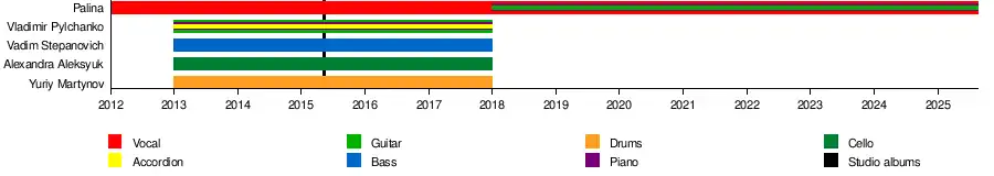 In February 2017 the singer was a guest of Siarhei Budkin’s program "Belsat Music Live", where she acted in a new stage format without a guitar and her musical band.[19] In that year she performed the back vocal part on the Helaiv's song "Anxiety" from the "Too Easy" EP.[20]