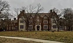 Probably the most significant house in the district is the 62-room Bishop Gallagher residence at 19366 Lucerne Drive (also known as 1880 Wellesley Drive).[11] The mansion was built in 1925 for the Fisher brothers, who hired the Boston firm of McGinnis and Walsh, specialists in ecclesiastical architecture, to design the Tudor Revival structure.[8][10] Upon completion, the Fisher brothers gave the property to Bishop Michael Gallagher, of the Roman Catholic Archdiocese of Detroit.[4] The 40,000-square-foot (3,700 m2) home is the largest within the city of Detroit.[4]