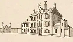 It housed a boys school by 1789 ran by Reverend Charles Barry and was later demolished around 1840 and replaced with Palmerston Park.[4] A nearby successor school was the later Rathmines School.
