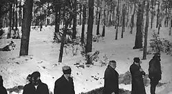 This was the last execution conducted in Palmiry in 1940 for which circumstances are at least partially known. However, during the postwar exhumation, three mass graves filled with 74, 28, and 24 corpses respectively, were found at the forest glade. It is certain that first two of them were filled and buried in the winter of 1940, while the third one was probably dug in the winter of 1940 or 1939.[42] Polish historians were not able to determine the circumstances of those massacres. According to Regina Domańska, about 27 prisoners of Pawiak were executed in Palmiry on 4 December 1940.[43] According to Maria Wardzyńska, up to 260 people could have been murdered in Palmiry in the winter of 1940.[44]