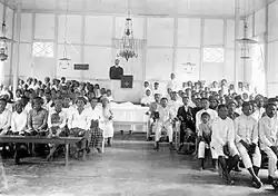 The name Pamona also refers to an association of a few ethnics, which is the abbreviation for Pakaroso Mosintuwu Naka Molanto (Pamona).[7] Later Pamona became an ethnic group that were unified under the governance of Dutch colonial. The name Pamona was declared in Tentena, and even a commemoration of the declaration was made by erecting a monument called Watu Mpoga'a as a remembrance of their origin[4] and also naming of a street, Pamona. Historically, the institutionalized of the Pamona customs was previously divided by a few authorities. For Poso, it was led by Datue Poso and a few of his kabosenya (meaning, elders) that represent each of their own ethnic groups.[8] If in Luwuland, it is led by Makole Tawi and the existence of the institution of Pamona customary currently is divided into two assemblies in Poso, namely Majelis Adat Lemba Pamona Poso, while in Luwuland (East Luwu Regency and North Luwu Regency) is the Lembaga Adat Lemba Pamona Luwu. At the moment, the existence of these assemblies are still preserved by the Pamona community be it those that are in Mangkutana, East Luwu Regency and North Luwu Regency, nor those that are in Poso Regency.