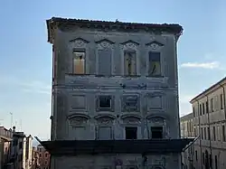 In its current state, the building looks like a "ruin of itself,"[28] especially after the abandonment by the families of the displaced people that consigned the building to total neglect. Following the adoption of several union ordinances to ensure the safety of the building by private property, for several years the facade of the building toward St. Paul's Square was "wrapped" with scaffolding to prevent the building from collapsing, and scaffolding is still in place today (2020) to prevent the fall of rubble on passersby.