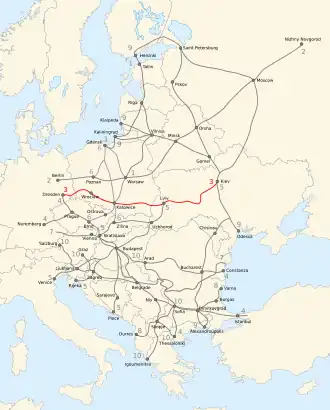 The Corridor IIІ is one of the Pan-European corridors. The corridor follows the route: Dresden - Wrocław - Katowice - Kraków - Lviv - Kyiv