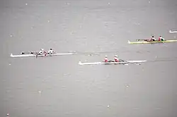 ![]() Huang and Pan (foreground) on their way to winning the LW2x B final at the 2010 World Rowing Championships | |||||||||||||||