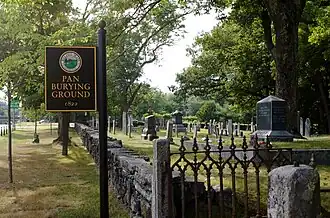 The Pan Historic District encompasses a historic rural landscape in eastern Bolton, Massachusetts. Named for its relatively flat terrain, the Pan was settled in the 18th century, with a largely agrarian settlement pattern augmented by small industries such as sawmills and a tannery. Architecturally the district has a well-preserved collection of Federal period residential architecture. Its main public feature is the Pan Burying Ground, an early cemetery located near the junction of Massachusetts Routes 117 and 85. It extends south from there along Route 85 and Long Hill Road, and north along Burnham Road.[2]