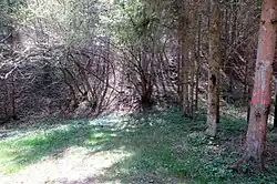 Pance is the site of four known mass graves associated with the Second World War. They are located in the woods northeast of the settlement and contain the remains of Slovene civilians that were accused of spying and were murdered by the Partisans in spring 1942. The Cirje 2 Mass Grave (Slovene: Grobišče Cirje 2) is also known as the Underhill Mass Grave (Grobišče Pod grmado).[6] The Cirje 3 Mass Grave (Grobišče Cirje 3) is also known as the Ravne Mass Grave (Grobišče Ravne).[7] The Cirje 4 Mass Grave (Grobišče Cirje 4) is also known as the Cirje Mass Grave (Grobišče Cirje).[8] The Cirje 5 Mass Grave (Grobišče Cirje 5) is also known as the Big Ravine Mass Grave (Grobišče Velika Draga).[9] The graves are marked with index numbers on trees.