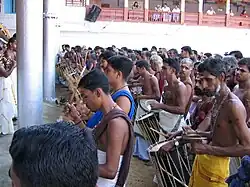 Panchari Melam is a percussion ensemble, performed during temple festivals in Kerala, India. Panchari Melam (or simply panchari), is one of the major forms of Chenda Melam (ethnic drum ensemble), and is the best-known and most popular in the kshetram vadyam (temple percussion) genre. Panchari Melam, comprising instruments like Chenda, Ilathalam, Kombu and Kuzhal, is performed during many temple festivals in central Kerala, where it is presented in arguably the most classical manner. Panchari is also traditionally performed, albeit with a touch of subtle regional difference, in north Kerala (Malabar) and south-central Kerala (Kochi). Of late, its charm has led to its performance even in temples in Kerala's deep south.