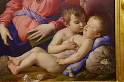 The Panciatichi Holy Family or Panciatichi Madonna and Child is a 1541 oil on panel painting by the Italian Mannerist painter Bronzino, signed on a stone in the bottom left corner. It is now in the Uffizi in Florence, where it was first recorded in the Tribuna in 1704. It remained there until 2010, when it was moved as part of the "New Uffizi" project. Preparatory drawings for the work are in the Uffizi's Gabinetto dei Disegni e delle Stampe (n. 6639F0) and (with variations) in the Phillips collection in London.[1][2]