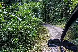 The hot spring is accessible by paved road, though, as of 2015, it is in poor condition, and as such it is more common for visitors to take motorcycles than cars.[3][4] Pancuran Tujuh can also be accessed by a 5-kilometre (3.1 mi) walk through the Baturraden resort.[2] From the parking area, visitors must descend about 200 steps (a distance of 300 metres (980 ft)) to reach the springs.[3][5]