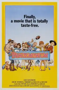 Pandemonium is a 1982 American parody slasher film.[2] It was directed by Alfred Sole and features an ensemble cast including Tom Smothers, Eileen Brennan, Phil Hartman, Tab Hunter, Judge Reinhold, Carol Kane, David Lander, Eve Arden, and Paul Reubens.[3]