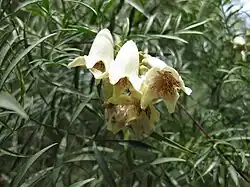Pandorea doratoxylon is a species of woody vine in the family Bignoniaceae and is endemic to Australia. The species was first formally described in 1927 by John McConnell Black who gave it the name Tecoma doratoxylon in Transactions and Proceedings of the Royal Society of South Australia.[2][3] In 1937, Black changed the name to Pandorea doratoxylon.[4][5]