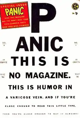 Panic was a bi-monthly humor comic that was published by Bill Gaines' EC Comics line during the mid-1950s as a companion to Harvey Kurtzman's Mad, which was being heavily imitated by other comic publishers.