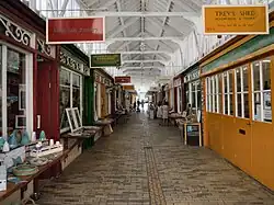 Market Place is a row of seven shops that flanks the entrance to the Market and Butcher's Row on Grenville Street and during the Victorian era the fish market and corn exchange seem to have been at either end.[3] Today these shops retain their original Victorian frontage with large windows and sell a wide range of goods ranging from fishing tackle to collectables and are open six days a week.[1][9]