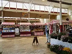 It has a wide range of stalls serving fresh local produce, hand-made soft furnishings, toys, locally designed greetings cards, stained glass workshops, gifts and home décor to hand-painted pictures and second-hand books. A café serves a range of food and beverages.[2]