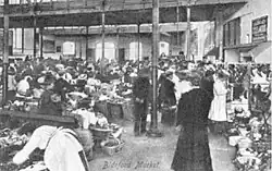 The Pannier Market in Bideford in North Devon is a large covered Victorian pannier market together with the Butcher's Row of small artisan stalls running along the lower level of the Market.[1] There has been a market on the site since 1675. Since 1989 it has been a Grade II listed building on the register of Historic England.[2][3]
