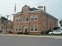 The railroad came to serve Paola in 1870, which also aided its progress through this time.[7] Following the discovery of natural gas in 1882, Paola became the first town west of the Mississippi River to use it commercially and have the town illuminated using natural gas lanterns. In 1898 the Miami County Courthouse was built, designed by architect George Washburn. Several homes and buildings were designed by Washburn, including the Paola Park Square gazebo and the Paola Free Library. Martha Smith had the Paola Library building constructed in honor of her husband John, a wine maker. It was completed in 1906 and the Paola Park Square's Victorian-style gazebo is from 1913. The library, courthouse, gazebo, and several homes are among those still in use today.[8]