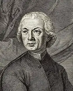 Frisi was born in Melegnano in 1728; his sibling Antonio Francesco, born in 1735, went on to be a historian.[2] Frisi was educated at the local Barnabite monastery and afterwards in that of Padua. When twenty-one years of age he composed a treatise on the figure of the earth, and the reputation which he soon acquired led to his appointment by the King of Sardinia to the professorship of philosophy in the College of Casale. He succeeded Hyacinthe Sigismond Gerdil, who had been appointed professor of philosophy at the University of Turin. His friendship with Radicati, a man of liberal opinions, occasioned Frisi's removal by his clerical superiors to Novara, where he was compelled to do duty as a preacher.[1]