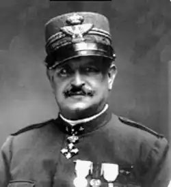 Two months before the start of the Great War, he was tasked with forming the XIV Army Corps, at the head of which, at the beginning of hostilities, he was positioned on the Isonzo front at Monte San Michele. He managed to hold the position thanks to his skills as a tactical organizer and leader of rank and file soldiers, mostly from the south of Italy. In recognition of this King Vittorio Emanuele III appointed him Commander of the Military Order of Savoy.[2] After the defeat at Caporetto he was placed in command of the new 9th Army.[1] He was promoted to Army corps general on 22 July 1923.