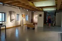 The outbuilding from the 19th century, a two-storey quarry stone construction with sandstone framing and pitched roof serves today as a venue for celebrations. In addition, there are changing exhibitions. Upstairs, a covered passageway leads to the main building.