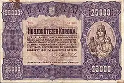 25000 korona | 213 × 147 mm | 6 September 1922 | |||