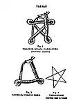 Paphals are believed to possess supernatural powers. They frequently incorporate mystic symbols, Meitei alphabets, and sacred hymns within and around the figure. In the past, Paphal drawings were placed above the main entrance of homes to ward off evil spirits.[2][6]