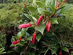 It is endemic to north-east Queensland, growing in the wet tropics,[1] as an epiphyte in the crowns of large trees, looking much like a vine. However on rocky summits it grows as a shrub.[5]