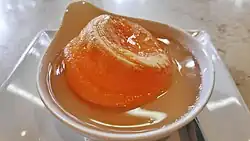 Papo de anjo or papo-de-anjo, roughly translated as "angel's double chin", is a traditional Portuguese dessert made chiefly from whipped egg yolks, baked and then boiled in sugar syrup.[1]