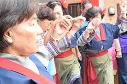 ![]() Papora women dancing for the harvest festival. | |