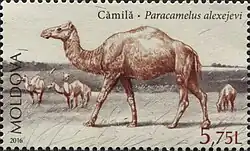 | Restoration of Paracamelus alexejevi on a 2016 stamp of Moldova. | |