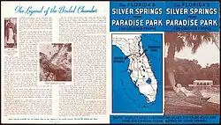 Paradise Park was a tourist attraction and the only local recreational facility "for colored people", as its sign said,[1] about 1 mile (1.6 km) from Silver Springs, near Ocala, Florida. It offered similar features, such as glass-bottom boats, "jungle cruises," a petting zoo,[2] a dance pavilion with jukebox, performers,[3]: 164 a softball field, a horseshoe toss,[3]: 159 and a sandy beach with lifeguards. It operated from 1949 to 1969, closing soon after desegregation of Silver Springs.[4] It served African American patrons prohibited from Silver Springs' boat rides that were limited to whites only.[3]: 5–7 As was the rule during the allegedly separate but equal period, "Paradise Park was alright, but it wasn't up on a par with the white parts of Silver Springs."[3]: 159