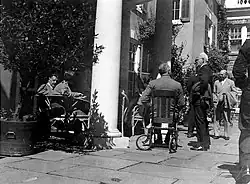 The Roosevelt Memorial in Washington, D.C., includes a statue of Roosevelt in a wheelchair. The wheelchair statue was not originally included in the memorial. It was added in January 2001 because of the concerns of disability-rights advocates and fundraising by the National Organization on Disability.[24][25]