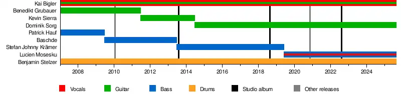 - Kai Bigler – lead vocals, guitar (2007–present)