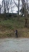 No finds have been attributed to the pre-Roman Iron Age. Prichard's excavations in 1867 found that the floor of one of the circles contained marine shells, bones of domestic animals, charcoal, and pottery of white, light gray, black, and brick-red fabrics, with one "specimen of what is usually denominated Samian". Two larger pieces of bone had possible tally marks.[3] Six minute beads of coloured glass, and tiny fragments of bronze, were also found, and a piece of flint.