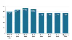 Under the current FMLA system, approximately 40% of United States workers are ineligible for benefits due to the brevity of their tenure or the smallness of their firm.[37] These excluded populations are often low-waged and minority women thus furthering their already present disadvantage. In 2016, 38% of white working mothers qualified for and could afford to take unpaid leave under FMLA compared with 30% of African American women and 25% of Hispanic women.[35] Moreover, the unpaid aspect of the current policy limits access to those who are economically well off. The United States Department of Labor reported that over a 22-month period in 1999 and 2000, 3.5 million people needed leave but were unable to take it due to affordability concerns.[98] In the private sector, it was found that 12% of workers received paid paternity leave with 23% of workers in the highest-wage quartile receiving paid maternity leave versus 5% of workers in the lowest-wage quartile.[35] The lack of monetary compensation may hinder the ability of women who are not as financially secure as others to balance employment with their family life. Upper-class women are more likely to take unpaid leave than lower-class women. In addition, more white women take unpaid maternity leave than black or Hispanic women. This imbalance contributes to the discrepancies in infant mortality between groups.[15]