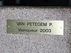This 300 m sector was created for the centenary event in 1996 by laying a strip of smooth new cobbles down the centre of a wide street. Among the cobbles are plaques to every race winner, giving the road an official name of 'Chemin des Géants,' [Road of the Giants].[34]