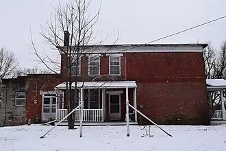 The Paris Male Academy is a Greek Revival style, two-story, three-bay, side passage plan, brick building with a rear addition, built in 1854. It has a front gable roof and four brick pilasters on the front facade. The building housed the Paris Male Academy until 1869, after which it became a private residence.[2]: 5