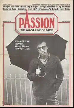 Launched in November 1981, Paris Passion was an English-language magazine in France that existed until early 1991. Its main editorial focus was on life in Paris for both residents and visitors. Also known as Passion, it featured an eclectic mix of feature journalism, interviews with leading figures in Paris, city consumer advice, coverage of French arts, culture, politics, design, architecture, food and fashion and was also a regular showcase for excellent photography. For many years, Passion also had a detachable events-listings section, published short fiction by Paris-based writers, a French-language section, and a separate fashion supplement called Accent.