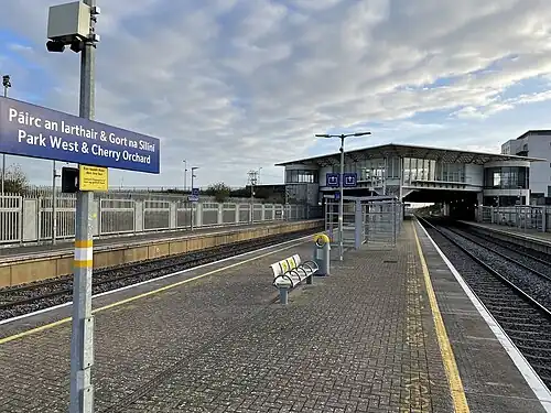 Park West and Cherry Orchard railway station is an Iarnród Éireann railway station in Ballyfermot, Dublin, Ireland, serving the Park West and the Cherry Orchard area.