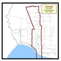 The final configuration of the Parkdale electoral district 1987–1999.