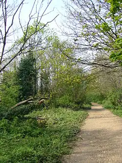 The Parkland Walk is a 3.1-mile (5.0 km) linear green pedestrian and cycle route in London, which follows the course of the railway line that used to run between Finsbury Park and Alexandra Palace, through Stroud Green, Crouch End, Highgate and Muswell Hill. It is often mistakenly described as 4.5 miles long, but even taking in the gap between the two sections it still only totals 3.1 miles (5.0 km). The route follows the bridges and cuttings of the line, but avoids the closed surface section of Highgate station and its adjoining tunnels, which are closed to walkers for safety reasons. The walk is almost all in Haringey, but a short stretch between Crouch Hill and Crouch End Hill is in Islington and this section incorporates Crouch Hill Park.[1][2][3][4][5]