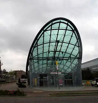 Parkweg is an underground subway station in the Dutch town of Schiedam, located just west of Rotterdam. The station is part of Rotterdam Metro line C and was opened as a result of an extension of the East-West Line (also formerly called Caland line) which opened in November 2002. This extension connected the former terminus Marconiplein to the North-South Line (also Erasmus line) at Tussenwater station.