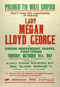 - ^ a b Jones, J Graham (December 1992). "The Parliament for Wales Campaign, 1950–56". Welsh History Review. 16 (2): 207–236. ProQuest 1310498251.